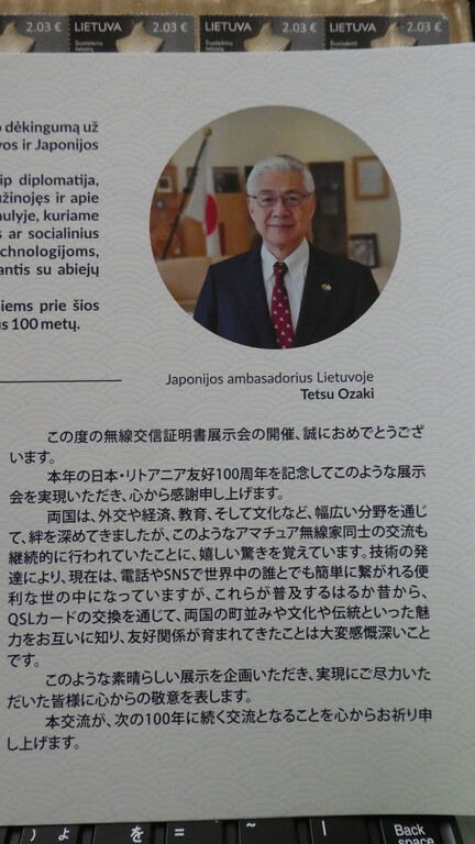 冊子冒頭に駐リトアニア日本国大使 尾﨑哲氏のメッセージがありますが、その中に「電話やSNSで世界中の誰とでも簡単に繋がれる便利な世の中になっていますが、これらが普及するはるか昔からQSLカードの交換を通じて、両国の街並みや文化や伝統といった魅力をお互いに知り、友好関係が育まれてきたことは大変感慨深い」と述べられていて、少し誇らしい気持ちになりました。